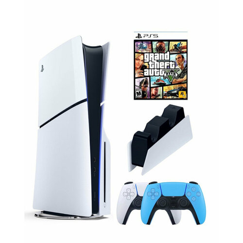 Приставка Sony Playstation 5 slim 1 Tb+2-ой геймпад(голубой)+зарядное+GTA 5