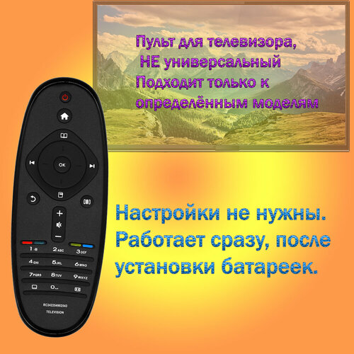 Пульт для телевизора Philips 32PFL5405H/60, ИК - интерфейс, чёрный, настройки не нужны