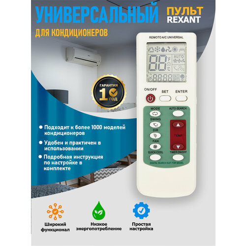 Пульт REXANT RX-100A, ИК, для кондиционера, универсальный