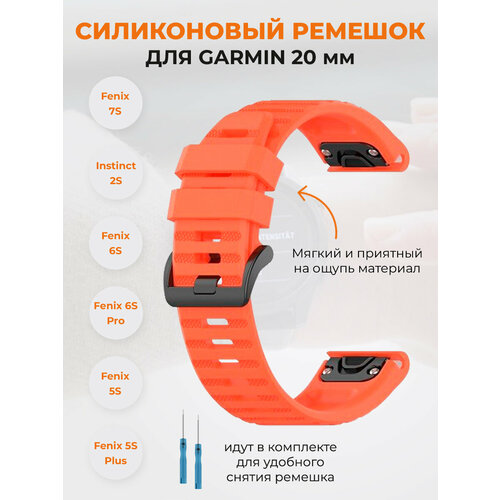 Силиконовый ремешок для Garmin Fenix 7S, Instinct 2S, Fenix 6S, Fenix 5S, 20 мм, кораллово-красный