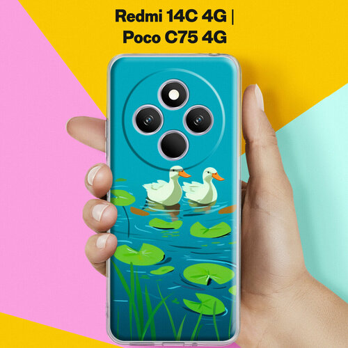 Силиконовый чехол на Xiaomi Redmi 14C 4G / Poco C75 4G с принтом "Гуси на воде" с прозрачными бортиками