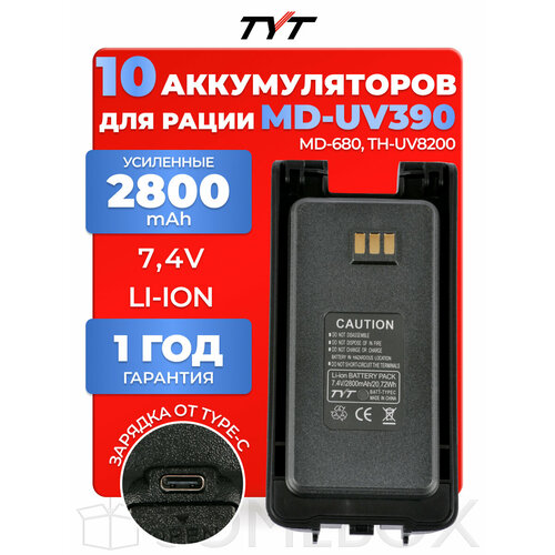 Аккумулятор усиленный для радиостанции TYT MD-UV390 2800 mAh, TYPE-C, 10 шт