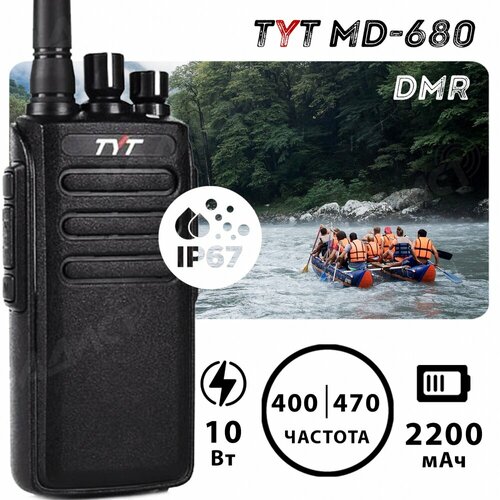 Цифровая рация TYT MD-680 с мощностью 10 Вт и емкостью аккумулятора 3600 мА·ч IP67
