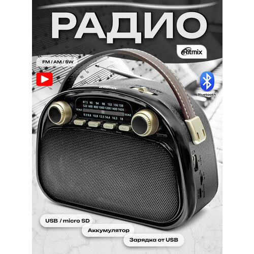 Радиоприемник RITMIX RPR-040 BLACK портативный, Bluetooth, USB/micro SD