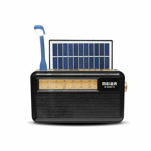 Радиоприемник Meier M-520BT-S, USB, microSD, Bluetooth, солнечная панель, USB лампа / черный