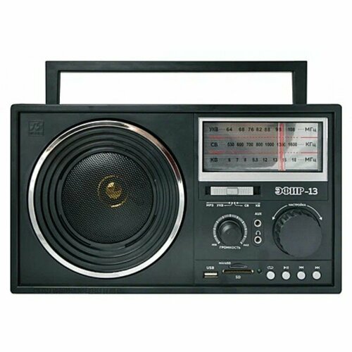 переносной радиоприёмник, приём FM, УКВ, СВ, КВ, аналоговая настройка частоты, 6 Вт, разъём для наушников, поддержка SD, USB, питан...