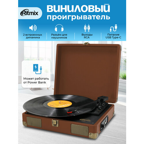 Виниловый проигрыватель RITMIX LP-100 Brown leather, питание от USB