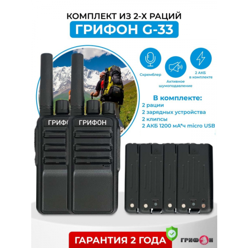 Радиостанция Грифон G-33 (комплект из 2 шт, АКБ 4 шт)_FN61007 черный