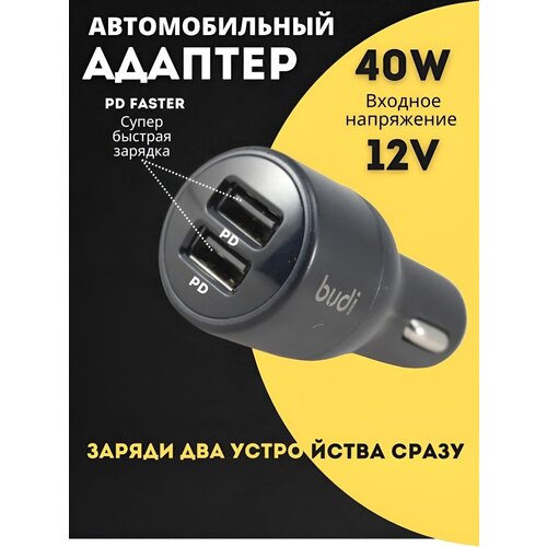 Автомобильное Зарядное устройство в прикуриватель с быстрой зарядкой 40W