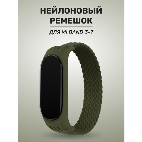 Монобраслет плетеный для Xiaomi Mi Band 3/4/5/6/7 / Тканевый нейлоновый ремешок без застежек, Хаки