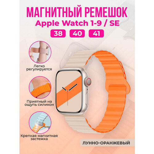 Магнитный силиконовый ремешок для Apple Watch 1-9 / SE (38/40/41 мм), лунно-оранжевый