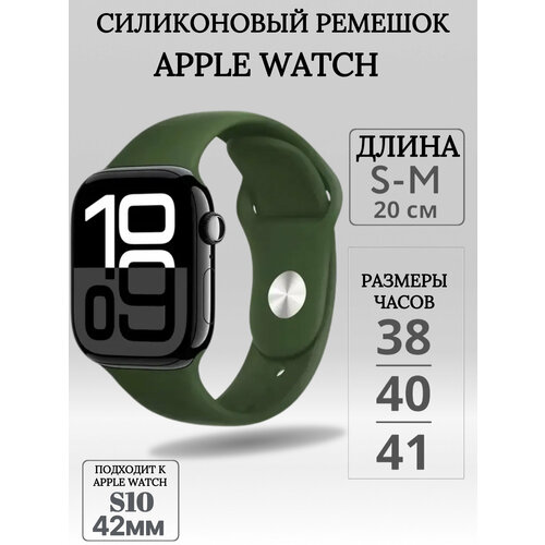 Силиконовый ремешок для Apple Watch 38/40/41 mm, темно-зеленый, размер s/m