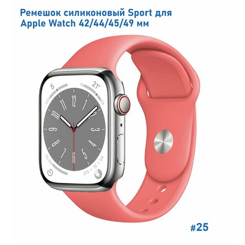 Ремешок силиконовый Sport для Apple Watch 42/44/45/49 мм, на кнопке, красная камелия (25)
