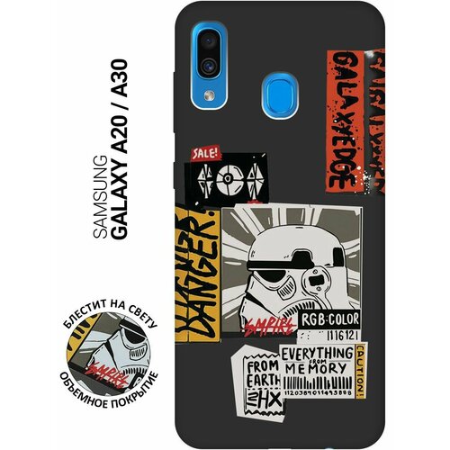 Матовый Soft Touch силиконовый чехол на Samsung Galaxy A20, A30, Самсунг А20, А30 с 3D принтом "Stormtrooper Stickers" черный