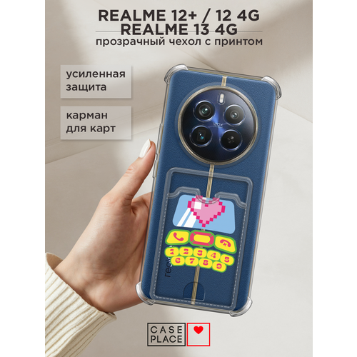 Чехол на Realme 12+/12 4G/13 4G (Реалми 12 Плюс/12 4G/13 4G) с картой и принтом Пиксельное сердечко
