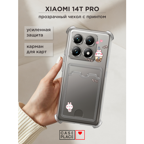 Чехол на Xiaomi 14T Pro (Сяоми 14T Про) с картой и принтом Bunny bubble tea