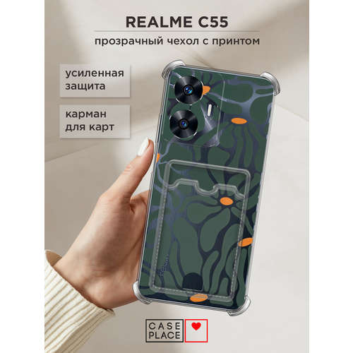 Чехол на Realme C55 (Реалми C55) с картой и принтом Волнистые цветы