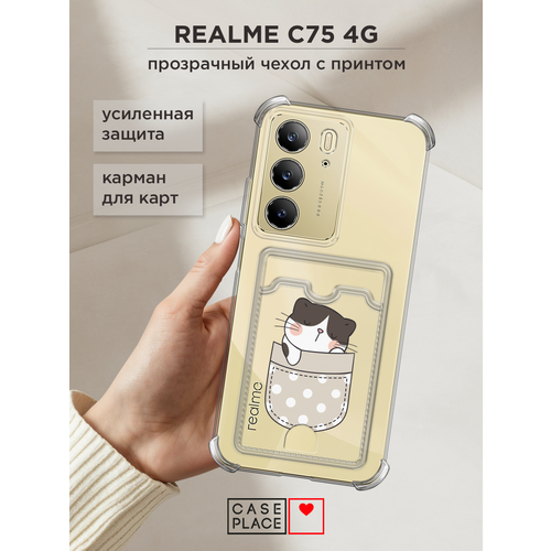Чехол на Realme C75 4G (Реалми C75 4G) с картой и принтом Котик спит в кармане