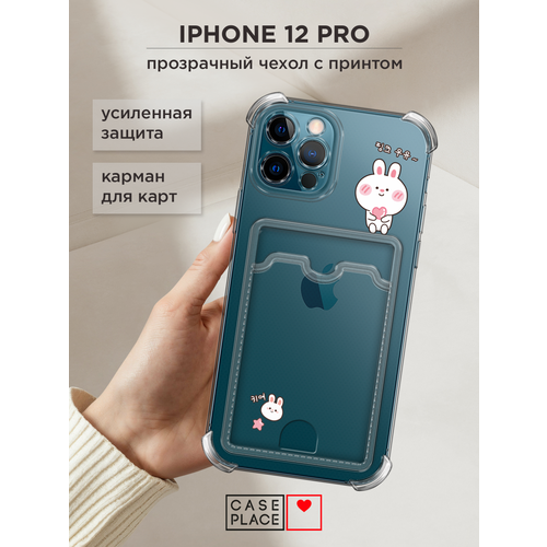 Чехол на Apple iPhone 12 Pro (Айфон 12 Про) с картой и принтом Bunny with heart