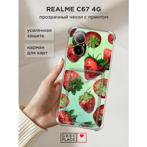 Чехол на Realme C67 4G (Реалми C67 4G) с картой и принтом Сочная клубника 4