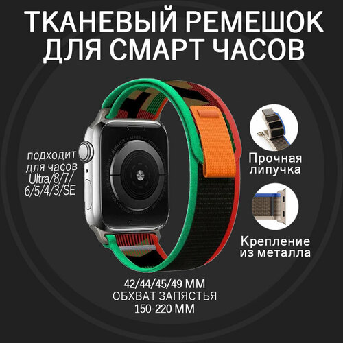 Ремешок для Apple Watch ULTRA 49mm, Series 1-8, SE, 42/44/45/49mm, тканевый темно зеленый
