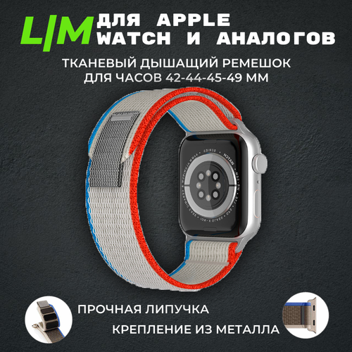 Ремешок для Apple Watch ULTRA 49mm, Series 1-8, SE, 42/44/45/49mm, тканевый светло-серый красный синий