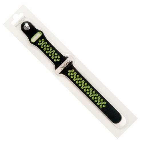 Силиконовый ремешок перфорированный NK для умных часов Apple Watch 38/40мм (10), черный+зеленый, на кнопке 2000000000541