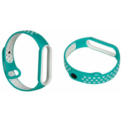 Silicone strap / Силиконовый ремешок перфорированный NK для Xiaomi Mi Band 5 (5), бирюзовый+белый, на кнопке