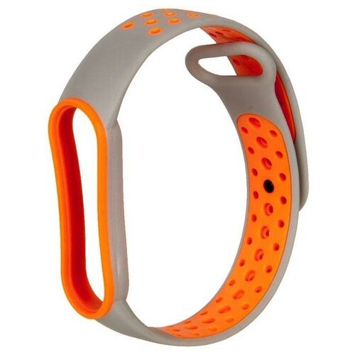 Silicone strap / Силиконовый ремешок перфорированный NK для Xiaomi Mi Band 5 (9), серый+оранжевый, на кнопке