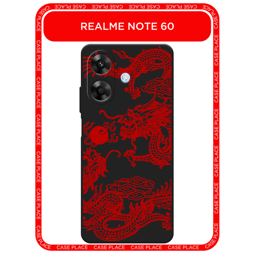 Черный матовый чехол на Realme Note 60/60X / Реалми Нот 60/60X с принтом Красный азиатский дракон