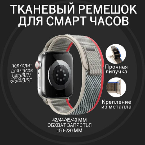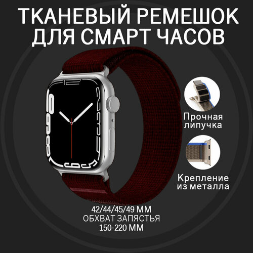 Ремешок для Apple Watch ULTRA 49mm, Series 1-8, SE, 42/44/45/49mm, тканевый светло бордовый, размер L (запястье 160–180 мм), XL (запястье 180–200 мм), XS (запястье 120–135 мм)