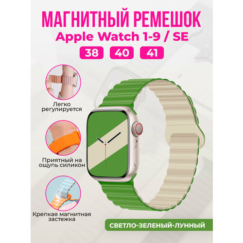 Магнитный силиконовый ремешок для Apple Watch 1-9 / SE (38/40/41 мм), светло-зеленый-лунный