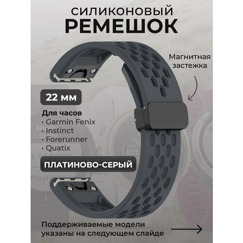 Силиконовый ремешок для Garmin Fenix / Instinct / Forerunner / Quatix, 22 мм, c магнитной застежкой, платиново-серый