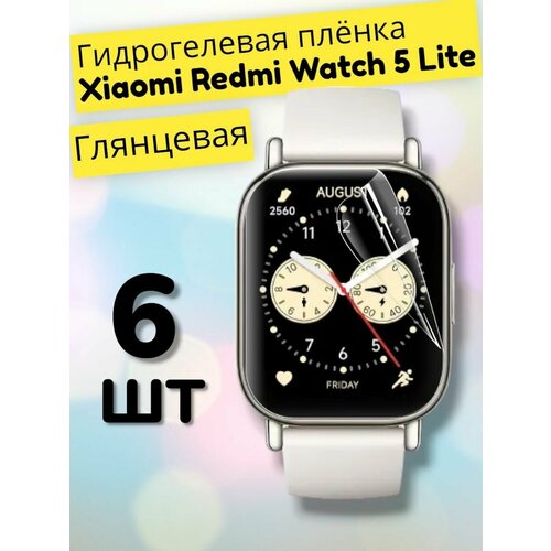 Гидрогелевая защитная пленка (Глянец) на смарт-часы Xiaomi Redmi Watch 5 Lite (6шт)/бронепленка редми вотч 5 лайт
