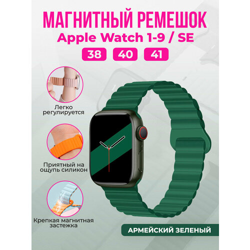 Магнитный силиконовый ремешок для Apple Watch 1-9 / SE (38/40/41 мм), армейский зеленый