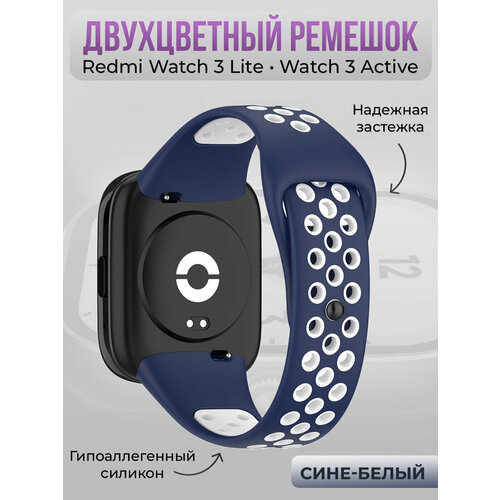 Двухцветный силиконовый ремешок для Redmi Watch 3 Lite, Watch 3 Active, сине-белый