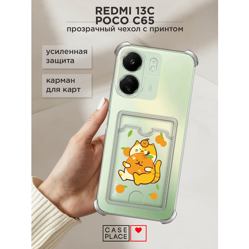 Чехол на Xiaomi Redmi 13C/Poco C65 (Сяоми Редми 13C/Поко С65) с картой и принтом Корейский оранжевый котик