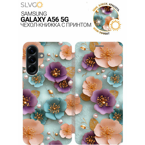 Чехол-книжка на Samsung Galaxy A56 5G с принтом Нежный цветочный вальс, bkg