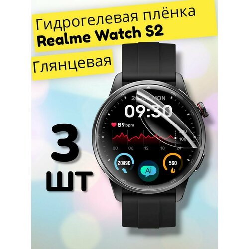 Гидрогелевая защитная пленка (Глянец) на смарт-часы Realme Watch S2 (3шт)/бронепленка реалми вотч с2