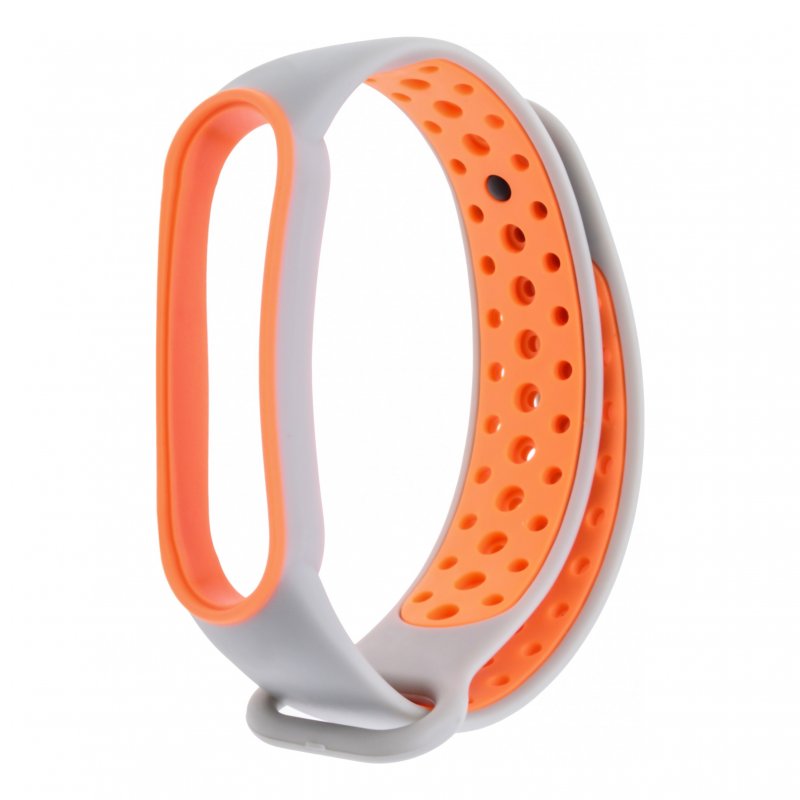 Ремешок для Xiaomi Mi Band 5 / Mi Band 6 / Mi Band 7 Sport (с отверстиями) (тип 1) серый с оранжевым