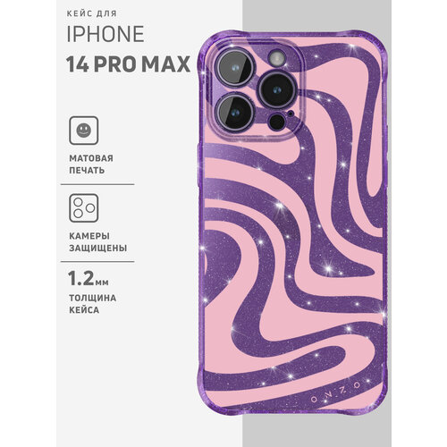 Противоударный чехол для iPhone 14 Pro Max фиолетовый / Бампер на Айфон 14 Про Макс с блестками принтом "Полосы"