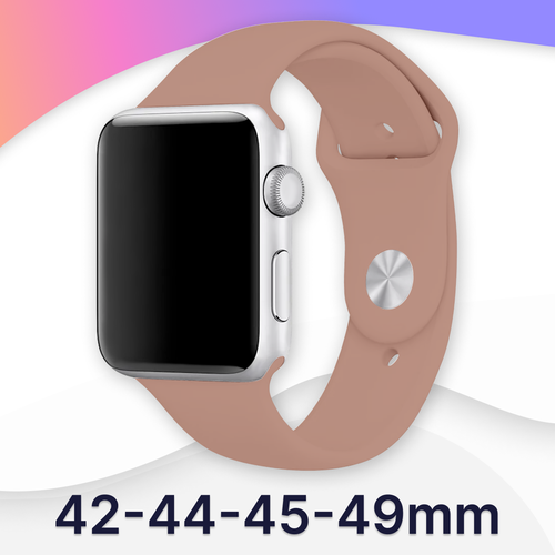 Силиконовый ремешок для Apple Watch 42-44-45-49 mm, Series 1-9, SE, Ultra / Сменный браслет (Sport Band) для смарт часов Эпл Вотч 42-49 мм (Pink Sand S)