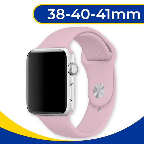 Силиконовый ремешок на Apple Watch 1-9, SE 38, 40, 41 мм / Сменный браслет для смарт часов Эпл Вотч 1, 2, 3, 4, 5, 6, 7, 8, 9, СЕ / Нежно-розовый