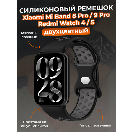 Двухцветный силиконовый ремешок для Xiaomi Mi Band 8 Pro/9 Pro и Redmi Watch 4/5, черно-серый
