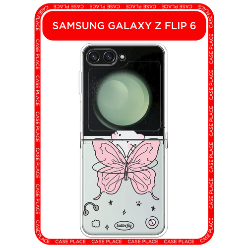 Чехол на Samsung Galaxy Z Flip 6/7 FE / Самсунг Z Flip 6/7 Фе с принтом Котик-бабочка, прозрачный