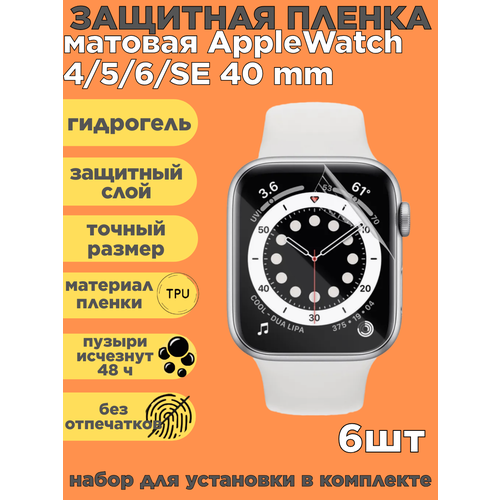 Комплект 6 шт. Защитная пленка на Apple Watch 4, 5, 6, SE 40 mm, матовая