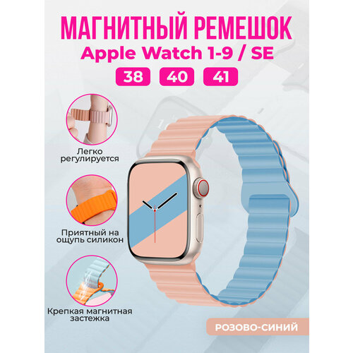 Магнитный силиконовый ремешок для Apple Watch 1-9 / SE / SE 3 (38/40/41 мм), 11, S10/S11, 42 мм, розово-синий