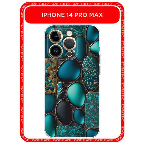 Чехол на Apple iPhone 14 Pro Max / Айфон 14 Про Макс с принтом Бирюзовые камни