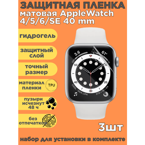 Комплект 3 шт. Защитная пленка на Apple Watch 4, 5, 6, SE 40 mm, матовая