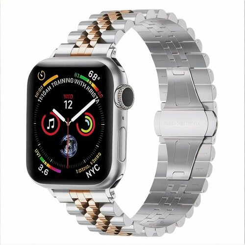 Металлический ремешок с застежкой для Apple Watch 42-44-45-49 mm, Series 1-9, SE, Ultra, серебристый-бронзовый